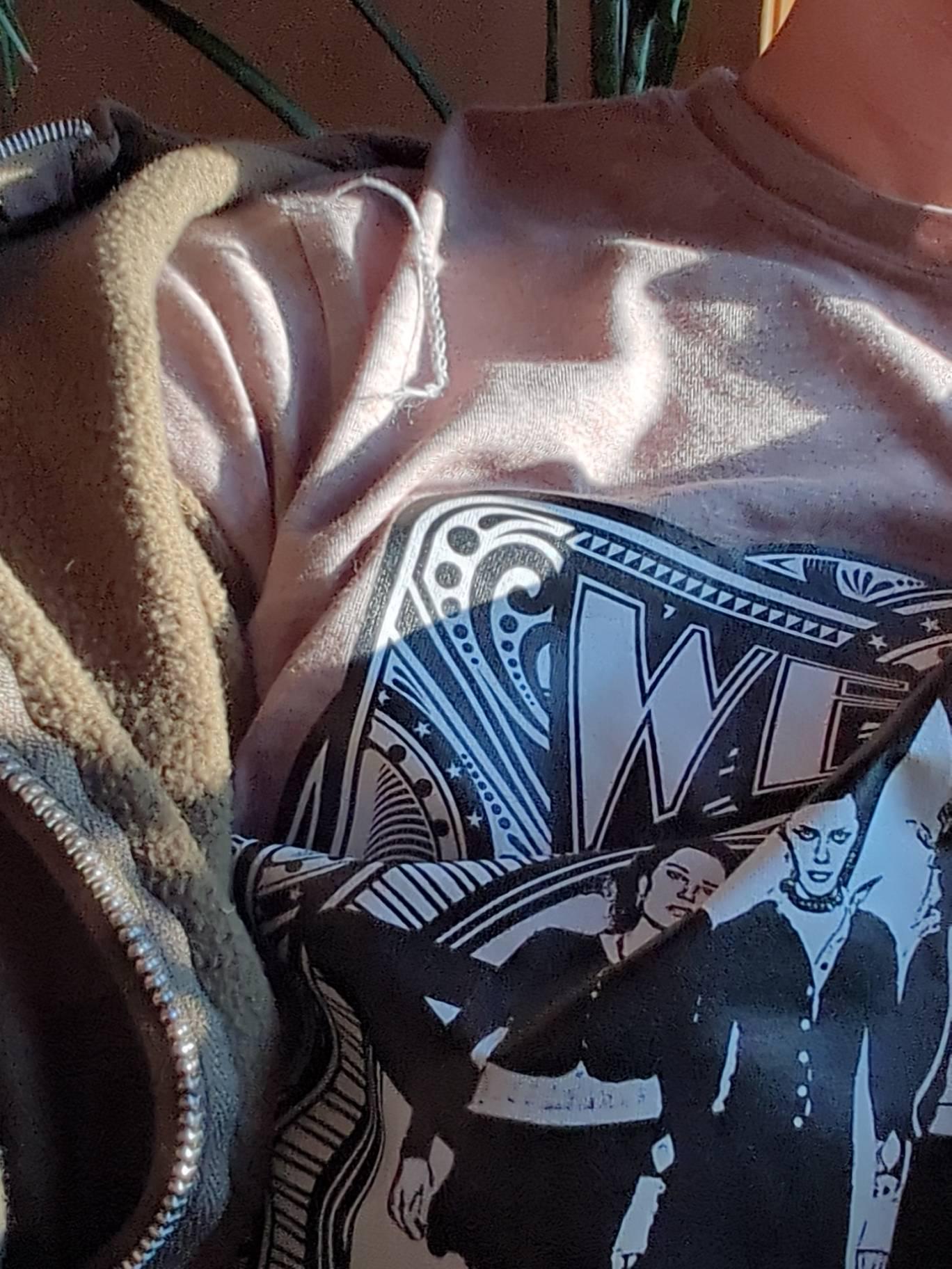 The shirt isn't of good quality - it arrived with a 2 inch section of stitching coming out of the sleeve seam. The print wasn't as shown in the pictures - instead of the shirt being the background for the print it came with a white background. The seller included a lot of extras in the package. An extra shirt, two packs of stickers, a bracelet, book marks, a post card, etc. This was very generous of them. The sellers customer service was excellent. I messaged them because the item didn't ship within a few days of ordering and they responded promptly. They said they would expedite the shipping to ensure the item arrived by Halloween.